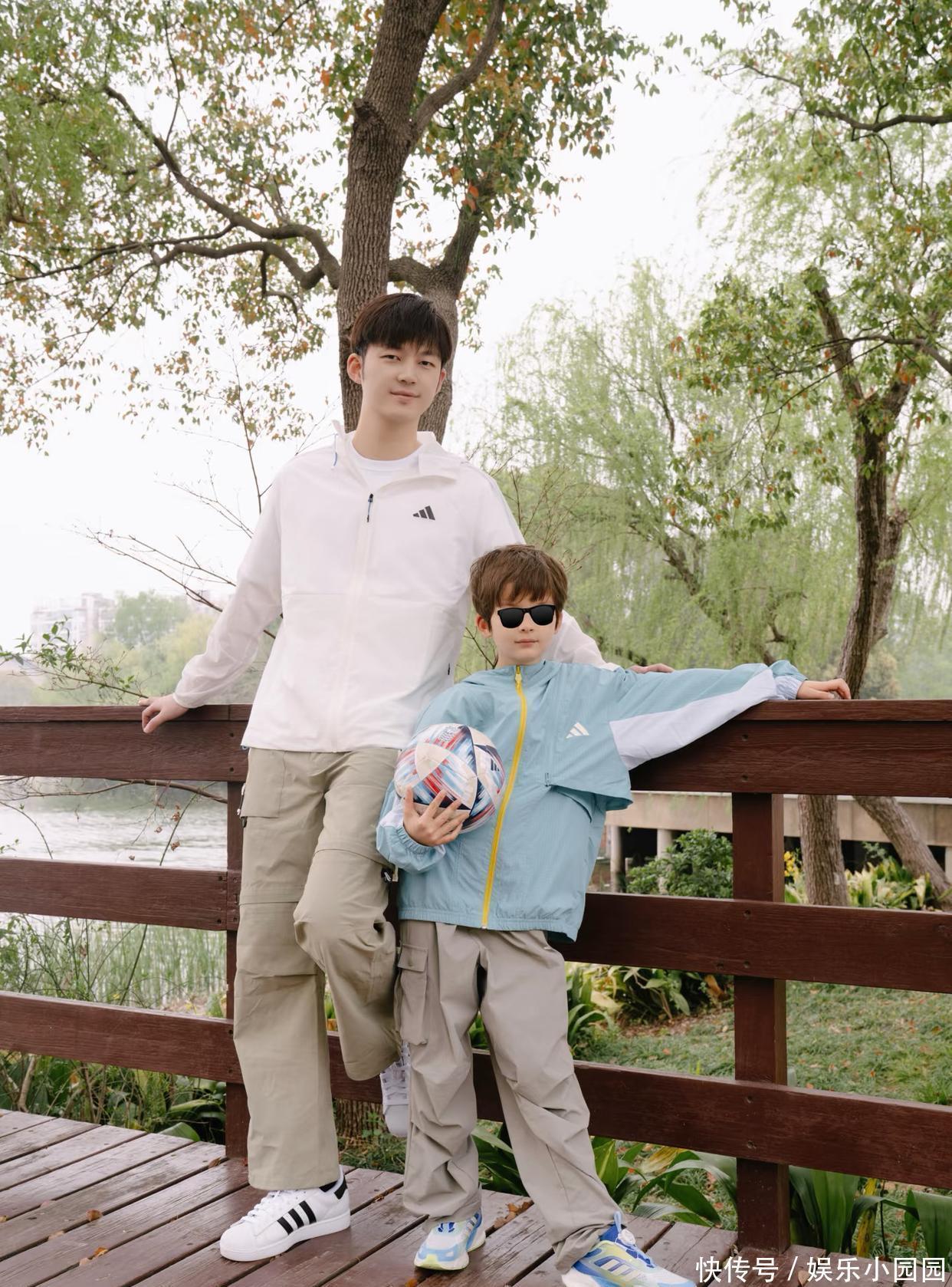 父子俩站在木桥边,濒临镜头涌现舒心的含笑。董力和女儿穿同款外衣,只不外董力的白色系愈加干净泄露一些。尤利斯的蓝白配色,更具少年感。