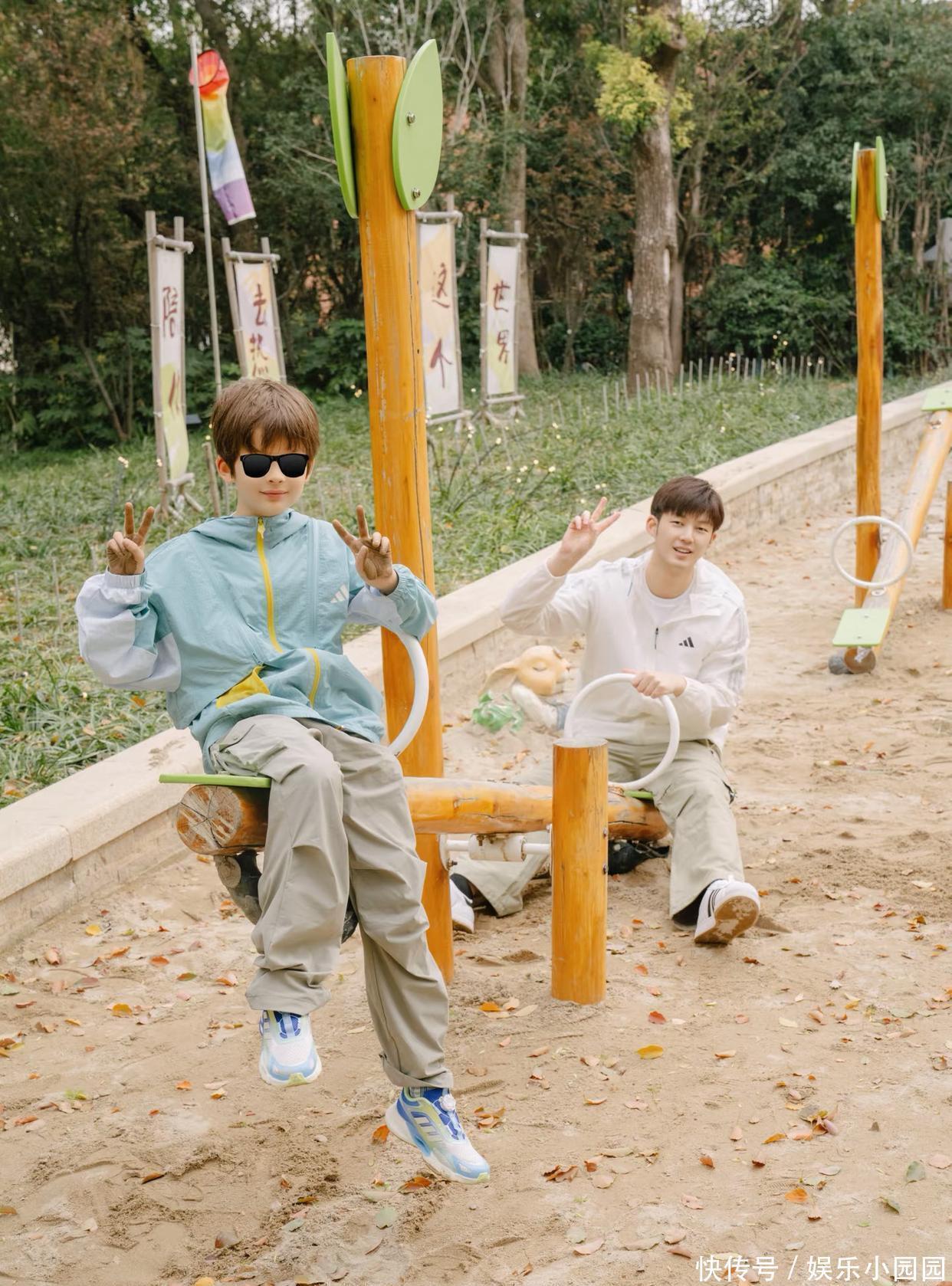父子俩在一说念的时光很怡悦,他们穿同款外衣、同款的工装裤,打扮得泄露干净。
