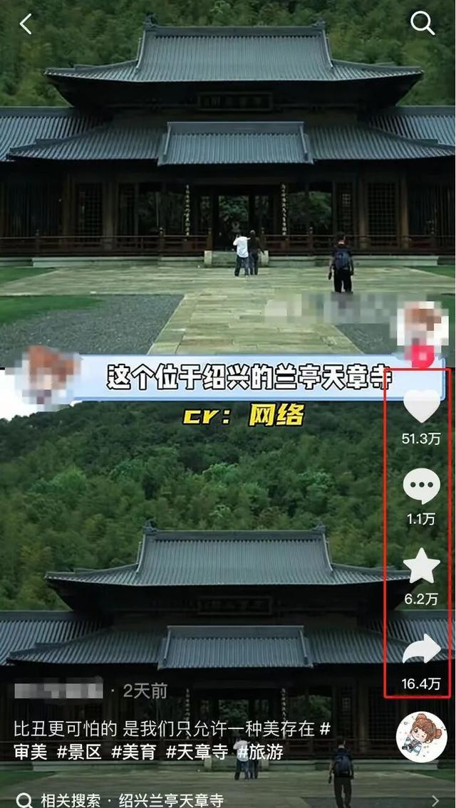 近日,集结平台上对于“兰亭天章寺”的短视频火了,不仅获取超50多万的点赞与转发,其微信搜索指数也从个位数暴涨至4月11日的16412次。绍兴兰亭更被贴上了“中国审好意思最佳的东谈主文景区”的词条标签。
