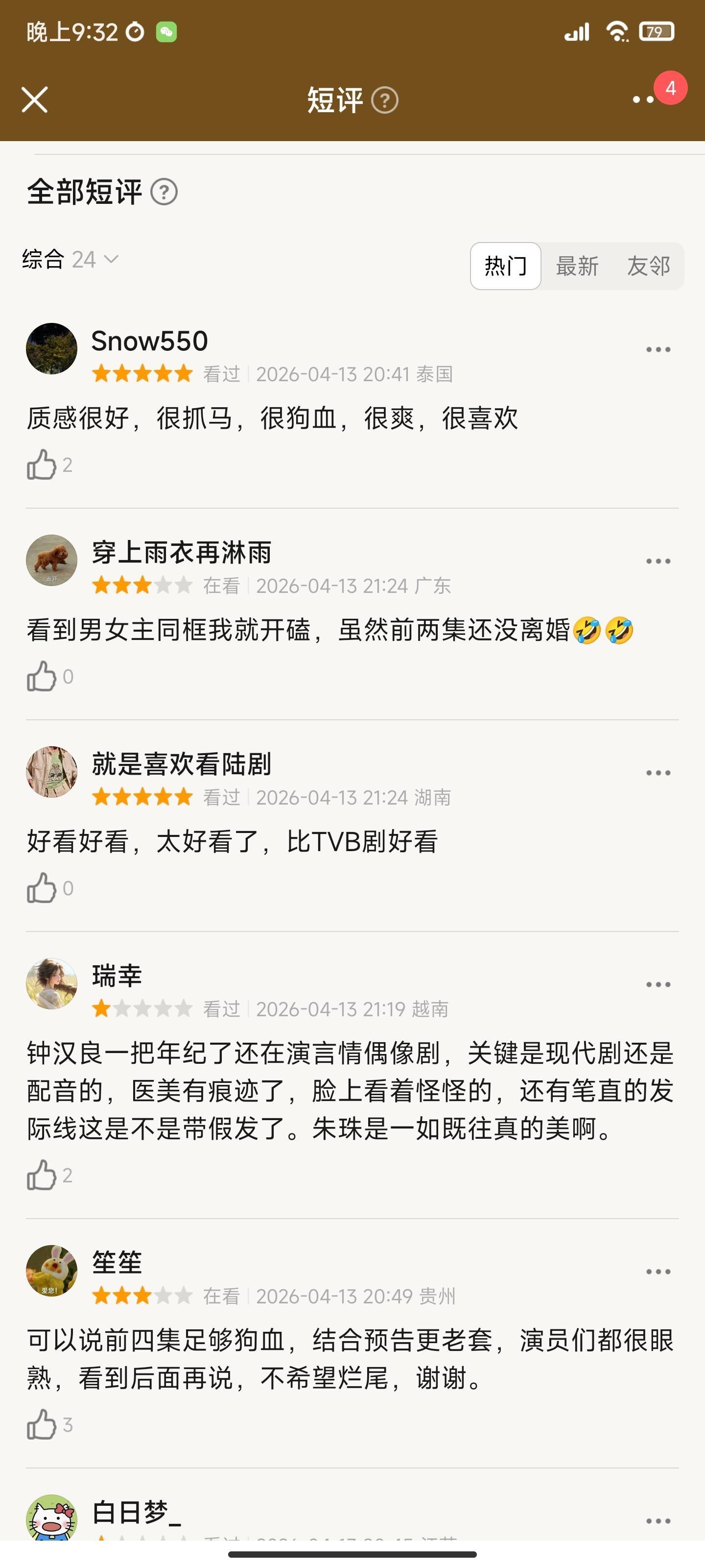 首播口碑也出来了,大部分不雅众给出了好评,评价特别一致,即是剧情狗血合手马但质感很好,短剧故事长剧质感,让东谈主很上面。