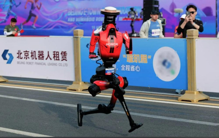 4月19日,在2026北京亦庄东谈主形机器东谈主半程马拉松赛事上,荣耀皆天大圣队的东谈主形机器东谈主“闪电”以50分26秒(净用时)的收成,成为本场机器东谈主马拉松的冠军,突破东谈主类半程马拉松寰球记录的56分42秒。此外,荣耀雷霆闪电队和星火燎原队的“闪电”机器东谈主划分以50分56秒和53分01秒,划分位列第二、第三名。
