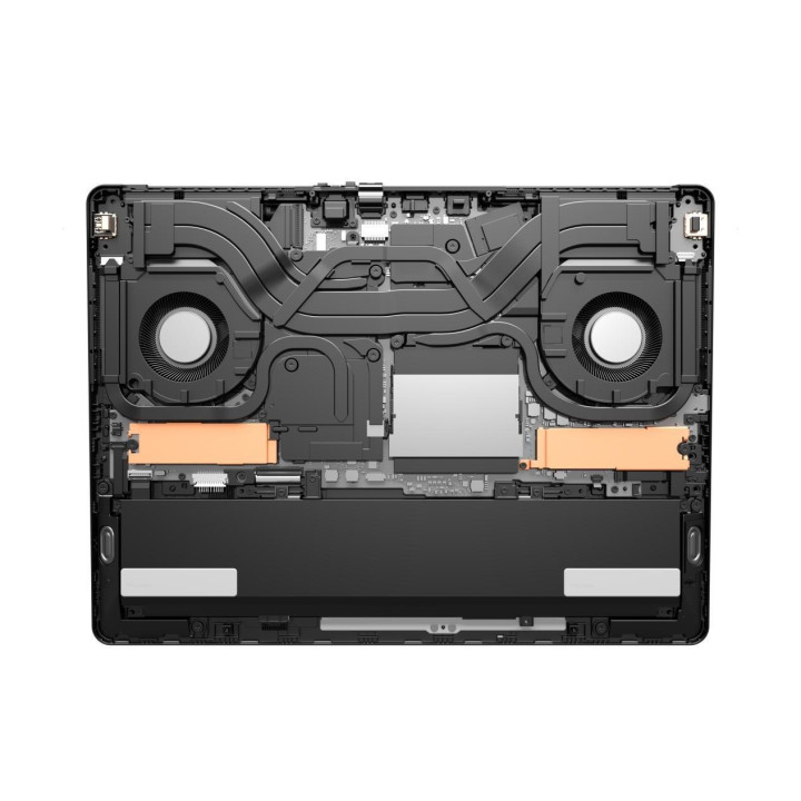 该散热系统继承6热管+双电扇+六风谈策画,超规格热管组合,10mm×2+6mm×3+2mm×1,好像快速传导CPU、GPU产生的热量;CPU与GPU均使用相变硅脂,导热通盘高达8.5 W/m·K,开云体育导热效用出色,确保热量快速懒散